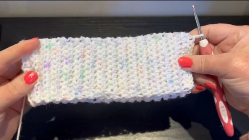 - Chain 1 and turn, working SC in the back loop only in each stitch.