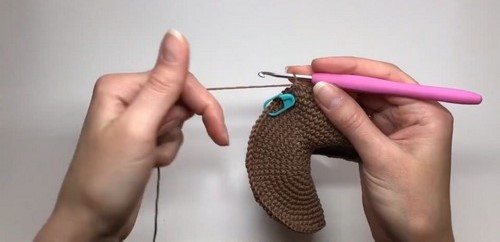 - Once the desired width is achieved, continue with sc or hdc rounds without increasing until the height reaches 16 cm (6.3 in).