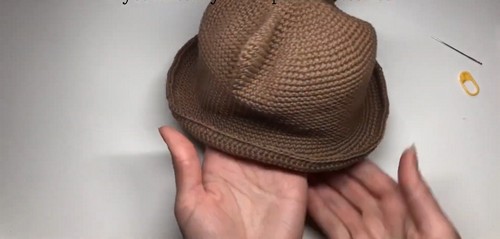 - Make two ears, fasten off, and sew securely to the top sides of the hat.