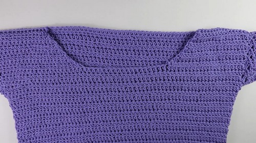 - Attach yarn to the back neckline and Single Crochet evenly around.