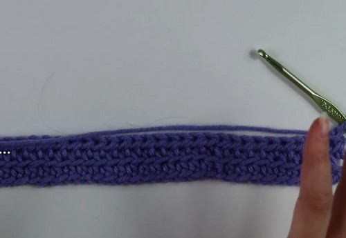 - Work Front Bar Half Double Crochet (FBHDC) in each stitch.
