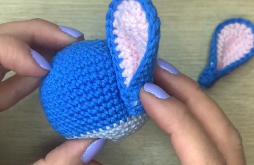- Rotate and 10 sc on other side. Last stitch: 1 inc (2 sc)