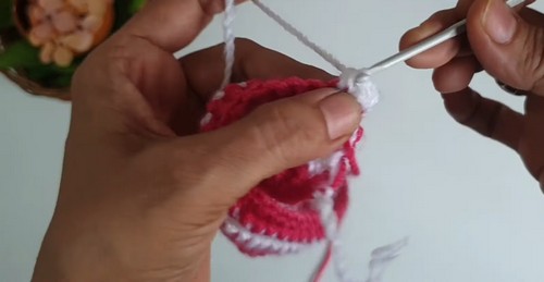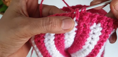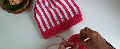 - Once the hat reaches the desired length, cut the yarn and weave the tail through the last loop to secure.