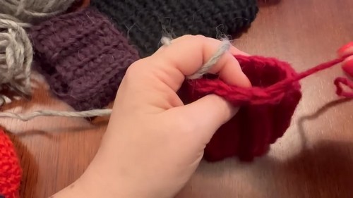 - Round 1 Work 1 sc evenly around cuff edge total 16 sc finish with invisible join cut yarn if changing color