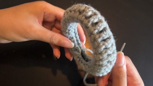 - Continue with 30 single crochets.