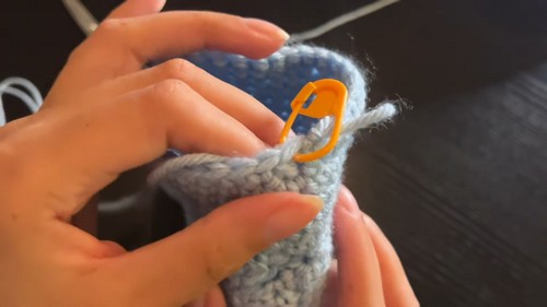 - Continue working rounds of single crochet until the ankle reaches your desired length (about 6 rows).
