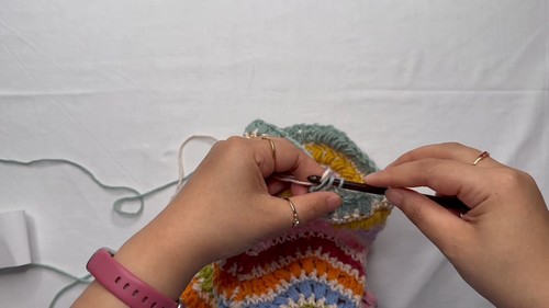 - Work the two row puff ripple repeat in the round turning at the start of each row.