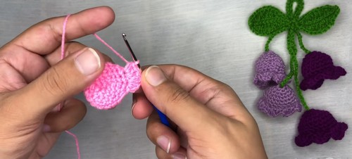 - In first stitch: 1 SC, 1 HDC, 1 DC.