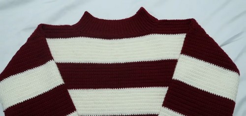 The striped design adds a playful touch, and you can personalize the colors to match any wardrobe. Whether you prefer a fitted or relaxed fit, this handmade sweater is versatile, comfortable, and great for everyday wear.