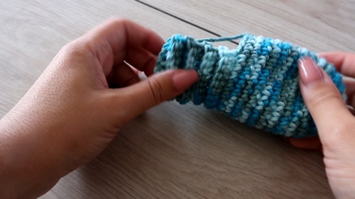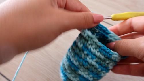 - Cuff R1: Work sc evenly around the opening (about 24 stitches).